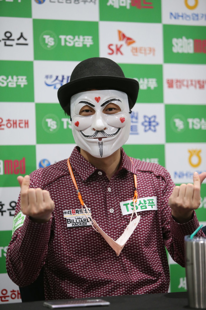 = 개인방송을 하면서 서바이벌 경기 방식으로 콘텐츠를 진행했다.방송에 대한 좋지 않은 선입견 때문에출연하시는 분들에게가면을 주문해 드렸다.가면에 대한 불편함으로 제가 쓰기 시작했는데 잘 어울렸다.여러 가면 중 하나를 골라서 우연하게 쓰게 됐다. 해커들이 흔히 쓰는 가면이라 당구 해커라는 닉네임이 나왔고 ‘당구를 해킹한다’는 의미에서 가면을 쓰고 시작했다.