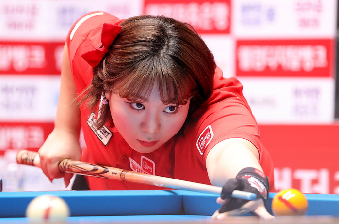 [Brilliant Billiards=유진모 기자] ‘LPBA 최연소 챔프’ 김예은(웰컴저축은행)과 김진아가 나란히 스롱 피아비(캄보디아·블루원리조트)와 히다 오리에(일본·SK렌터카)를 물리치고 8강에 올랐다. 20일 경기도 고양시 빛마루방송센터에서 열린 ‘웰컴저축은행 웰뱅 PBA-LPBA 챔피언십’ LPBA 16강서 김예은은 스롱 피아비에 세트스코어 2:1, 김진아는 히다 오리에를 세트스코어 2:0으로 제압했다. 이밖에 임정숙(크라운해태) 용현지(TS샴푸·푸라닭) 김보미(NH농협카드) 정보라, 김갑선이 16강서 승리를 거두고 8강 무대를 밟았다.