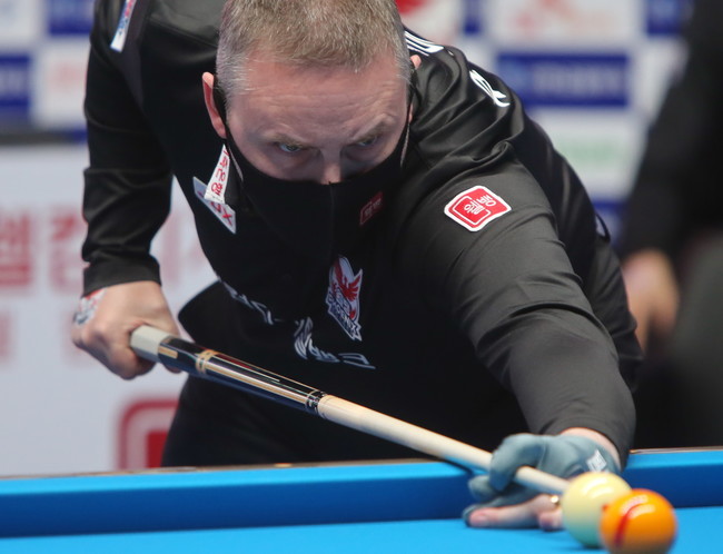 [브릴리언트 빌리아드=김철호 기자] 21일 고양 빛마루 방송센타에서 열린 신한금융투자 20-21 PBA 팀리그 3라운드 둘째날 두 번째경기 웰빙피닉스와 11승 무패의 TS.JDX의경기에서 어제 SK렌터카에 패하고 올라온 웰빙피닉스의 쿠드롱이 남자복식경기에서 2세트만에 혼자 15점을 따내며 완봉승을 거두었다