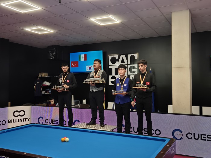[Brilliant Billiards=유성욱 기자] 김도현(상동고부설방통고 1학년)이 ‘제16회 세계주니어3쿠션선수권대회’에서 공동 3위를 차지하며 대한민국이 17년 연속 세계주니어선수권 입상 기록을 이어갔다. 대한당구연맹에 따르면 이번 대회는 지난 26일부터 28일(현지시간) 스페인 무르시아에서 열렸으며, 김도현은 준결승에 올라 한국 선수 중 유일하게 메달을 목에 걸었다. 한국은 2007년 김행직의 우승을 시작으로, 코로나19로 대회가 취소된 2020‧2021년을 제외하고 매 대회 메달을 따내며 17개 대회 연속 입상이라는 대기록을 이어가게 됐다.