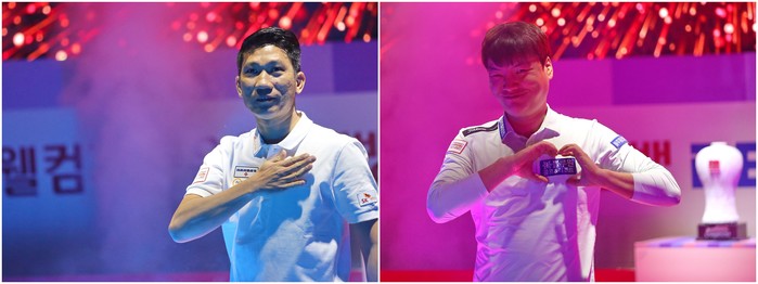다섯 번의 준우승 딛고 결승전에 올라온 강민구(블루원리조트)와 베트남 전사 응고(sk렌트카)의 경기 1세트는 역전에 역전을 거듭하며 매치포인트에 먼저 도달한 강민구가 응고의 뱅크샷으로 매치 포인트를 마무리하며 첫세트로 승리를 내주며 불안한 출발을 보였다