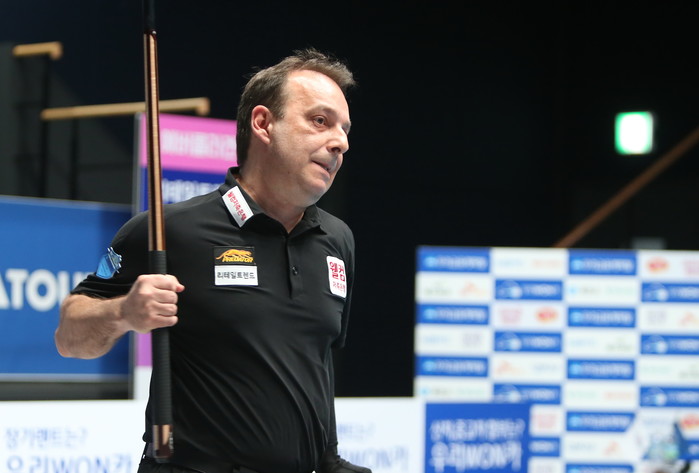 [Brilliant Billiards=김철호기자] 22일 일산 킨텍스 PBA 전용경기장에서 열린 우리금융 캐피탈 PBA 참피온십 개막전 PBA 8강 네번째 경기 터키의 스페인의 산체스(웰컴저축은행)와 한국 김재근(크라운해태)의 준결승을 진출을 위한 마지막 한판승부. 3쿠션 4대 천왕이자 스페인의 당구 전설 산체스는 한번의 우승에 만족할수 없는 참피온이다. 상대 김재근은 한국당구의 최고의 테크니션이자 당구계의 신사로 알려져 있다.