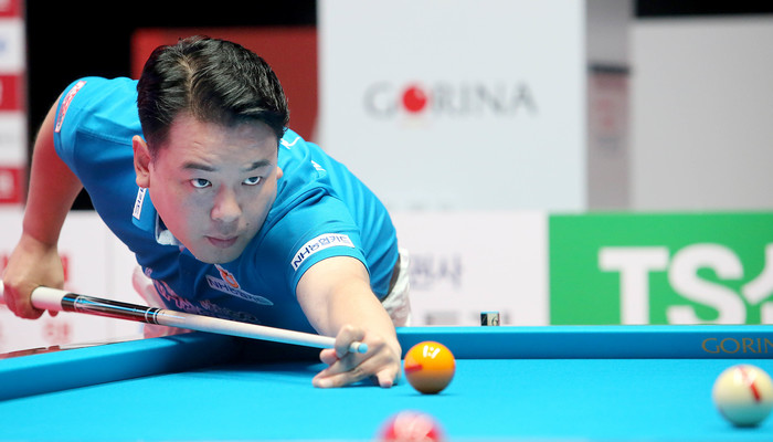 ▲ 2위 확보를 위해 전력을 다해야 하는 NH농협카드 팀리더 조재호선수가 볼을 조준하고 있다 |