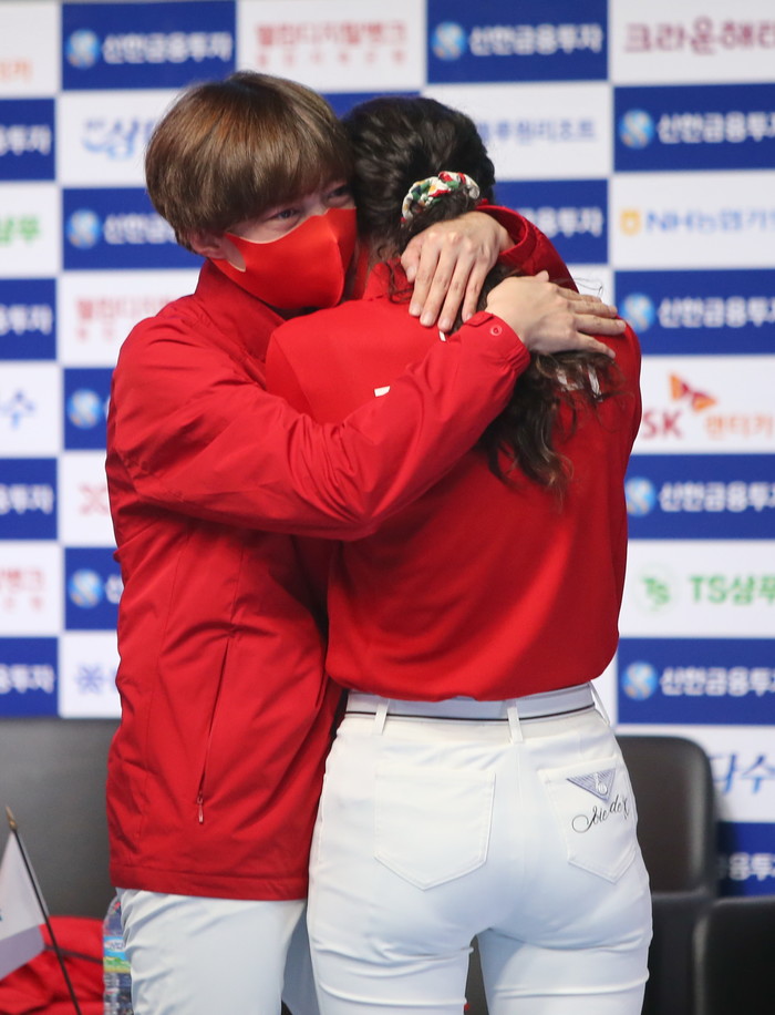 ▲ 울음을 터트린 김보미에게 다가가 위로해주는 임정숙선수 |