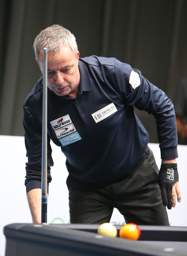 세계랭킹 1위 네덜란드 야스퍼스가 자신의 볼을 마지막 까지 쳐다보고 있다<원주=김철호기자>