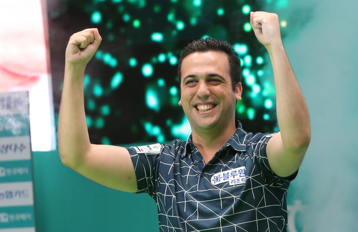 21일 서울 강서구 메이필드 호텔에서 열린 ‘ 하나카드 PBA-LPBA 챔피언십’ 결승전에서 사파타는 세트스코어 4 대 2(15-14,8-15.13-18,15-11,15-6) 로 승리를 거두며 사상 첫 프로 참피언에 올랐다.