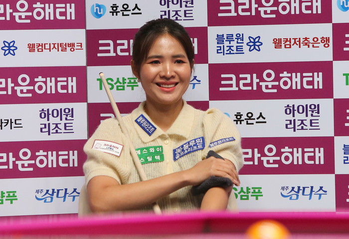 [크라운해태 챔피언십] 관중석에 답하며 웃어보이는 스롱피아비7일 경기도 고양시 빛마루방송센터에서 열린 ‘크라운해태 PBA-LPBA 챔피언십’ LPBA 스롱피아비(블루원리조트)와 한국의 김보미(NH농협카드)의 결승.
