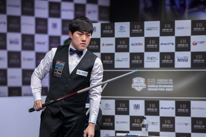 [Brilliant Billiards=김철호 기자] 9일 원주에서 열리고 있는 '호텔 인터불고 원주 월드 3쿠션 그랑프리 2021' 32강 조별 예선에서 세계 랭킹 1위 딕 야스퍼스(네덜란드)가 6승 1패를 기록하며 전체 1위로 16강에 합류했다. 또 이번 출전한 15명의 한국 선수 중 최완영(전북),황봉주(경남), 김준태(경북), 서창훈(시흥시체육회), 차명종(안산시체육회), 허정한(경남) 등 단 6명 만이 16강에 이름을 올렸다.